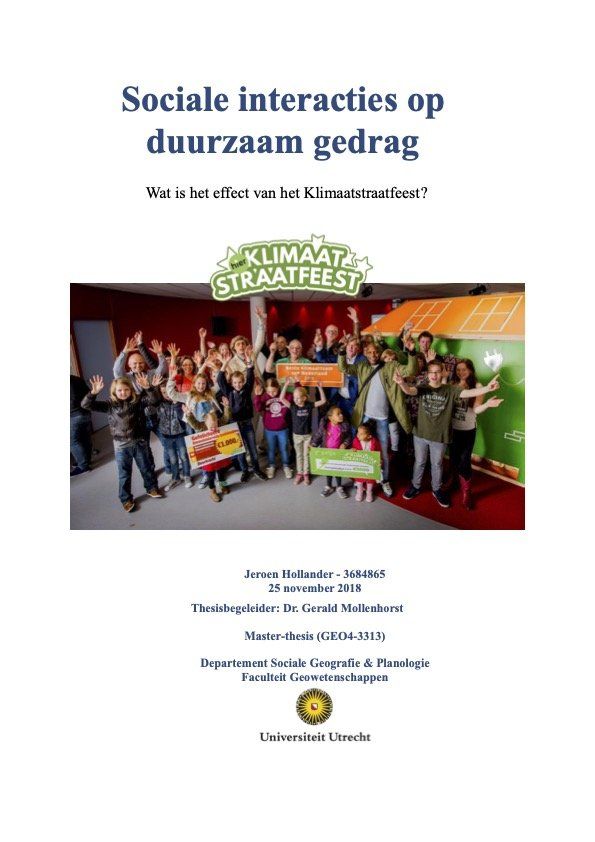 Wat is de invloed van deelname aan het Klimaatstraatfeest op de ontwikkeling en intensivering van duurzame energieconsumptie van huishoudens en welke rol speelt het sociale netwerk in de straat daarbij?